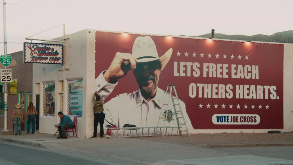 O que diferencia Eddington da grande maioria dos filmes de caráter político é que não há uma tentativa de legitimar moralmente o seu discurso. O Novo México é o segundo Estado com maior população indígena percentualmente dos EUA e Eddington é uma cidade, assim como a maior parte do continente americano, usurpada de seus moradores nativos. Os conceitos sagrados para os estadunidenses foram fundados com o sangue de quem estava lá antes. Não há nada capaz de compensar o que foi o processo de colonização das Américas. Portanto, não há sacralidade já que os símbolos culturais da nação foram impostos sobre culturas nativas já estabelecidas. As leis e concepções de uma terra roubada não são nada além do puro absurdo. Não há justiça em Eddington porque é uma cidade fundada em cima da injustiça. Essa é a grande contradição dos EUA — que se estende ao continente. Existem coisas importantes acontecendo hoje. Existem ideias e pautas a serem defendidas hoje. Mas se não olharmos para a base estrutural e não entendermos quem foram os primeiros desumanizados, a tendência é que esse processo se perpetue de diferentes roupagens. Não é como se Eddington realmente quisesse discutir essas questões durante a sua rodagem, mas ao assumir que a base está manchada de sangue faz com que cada ação seja mais significativa do que se fosse um espaço de neutralidade. Decisões do passado impactaram no presente e as decisões do presente impactarão no futuro de Eddington.