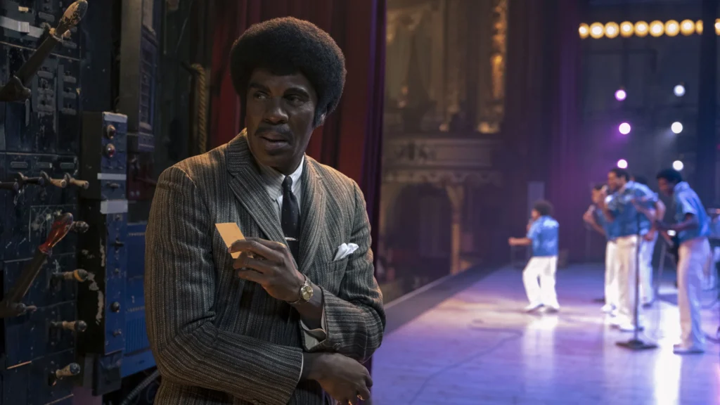 Também me chamou atenção de maneira positiva como a narrativa não suaviza Joe Jackson. Interpretado por Colman Domingo, ele surge como presença opressora, dessas que moldam uma vida inteira mesmo quando não estão em cena, afinal, pais. O filme não tenta transformar violência em disciplina inspiradora, nem romantizar “métodos abusivos de aperfeiçoamento” dos filhos em nome do sucesso posterior. Existe uma lucidez importante em reconhecer que parte daquela excelência artística nasceu dentro de um ambiente de medo e cobrança constante. Isso não engrandece ninguém, apenas torna tudo mais triste.