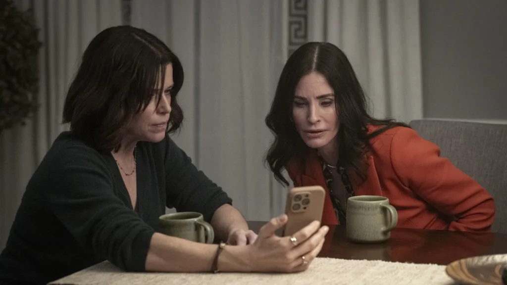 Essa apatia se estende às mortes, que sempre foram parte fundamental do impacto da franquia. Aqui, além de o filme novamente ser covarde ao evitar eliminar personagens minimamente relevantes, as cenas carecem de invenção. Com exceção da “morte da cerveja”, que ao menos tenta brincar com a encenação, o restante soa automático, sem criatividade, sem choque, sem ironia. Em uma saga que se destacou justamente por transformar o slasher em comentário metalinguístico afiado, é estranho assistir a um capítulo que parece cumprir tabela até quando deveria estar provocando o público.